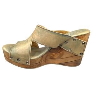 Bed Stu Women's Olea Olive Distressed Boho Wood Slip On Sandals Size US 7.5