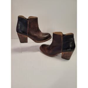 Keywords: Bed Stu Yell Bootie Women Size 8 Leather Ankle Boot Brown Two Toned Side Zip