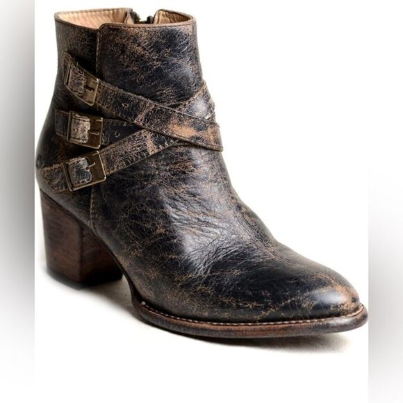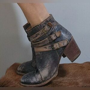 Bed Stu boots Begin Black Lux Leather Ankle booties Distressed size 7.5