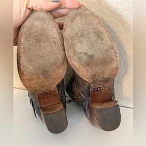 Cute rodeo Coastal Cowgirl booties. Wear with everything from shorts to jeans, dresses and skirts. Black with a distressed worn look. Great condition, small sign of wear on sole, but they get better with age! Questions? Leave a comment below!