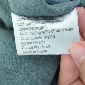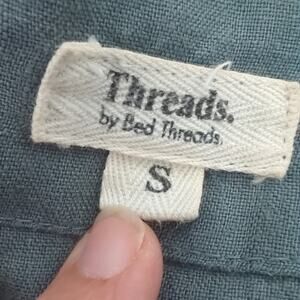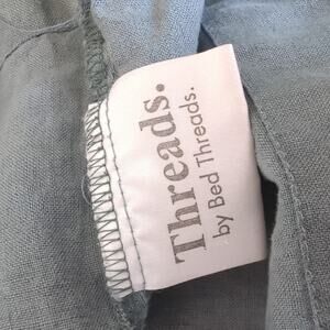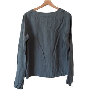 threads by bed threads women's top size small long sleeve 100% linen slit sleeve v-neck super cozy washed linen length 24 flat across under arm 20 natural fabric may have color variations.