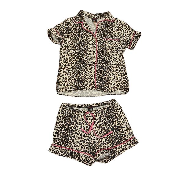 Bed head neiman Marcus cheetah print Shorts pajama set preppy pjs Womens small
