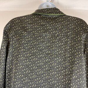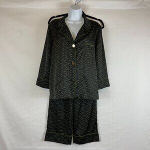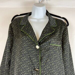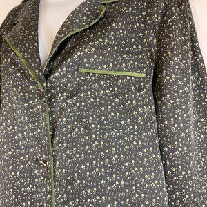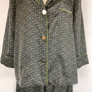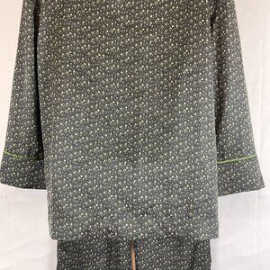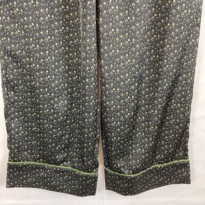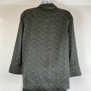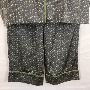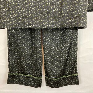 Bed to Brunch Pajama Set XS Black Green Print Tie Elastic Waist Long Sleeve Button Front