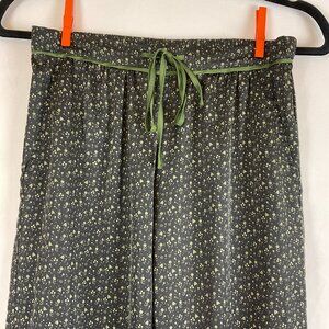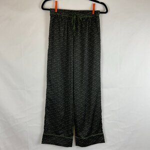 Bed to Brunch Pajama Set XS Black Green Print Tie Elastic Waist Long Sleeve