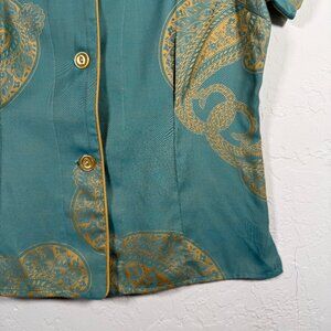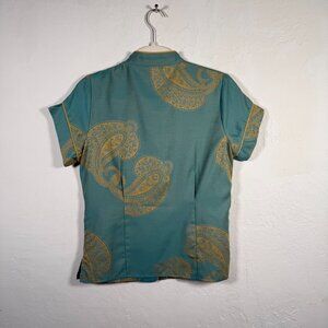 BedHead Jacquard Teal Paisley Design Elastic Waist Button Up Pajama Set Size S