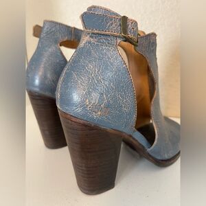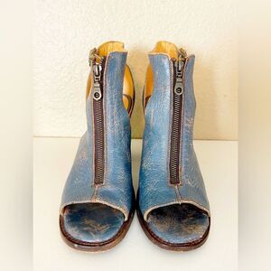 BedStu Olena zip front blue rustic leather peep toes heels 10