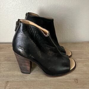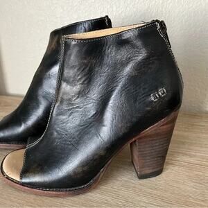 Bed-Stu Onset Peep Toe Black Driftwood Distressed Leather Ankle Bootie Heels (9)