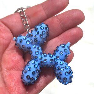 Bedazzled Balloon Dog Keychain, Light Blue Dog and Stones