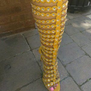 Reposhing this item I purchased loved them but my calves are too small for the shoes. These are some bad gladiator’s heels and true head turners. I do not want to Reposh but there is no need to keep if i cannot wear them. Someone will be extremely Happy as i was when they arrived. The rhinestones sparkle in any angle!!!