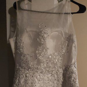 This gorgeous, sleeveless, custom made wedding dress is new and never worn!