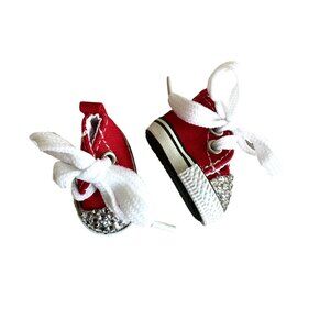 Add sparkle to your doll's wardrobe with these adorable bedazzled red sneakers!