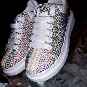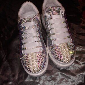 Brand new, white tennis shoes covered with rhinestones and Pearl's! The most eye-catching, sparkly shoes EVER! Great gift for the girl whose favorite color is *sparkle!!