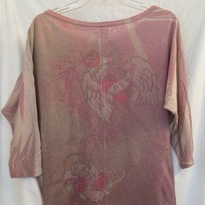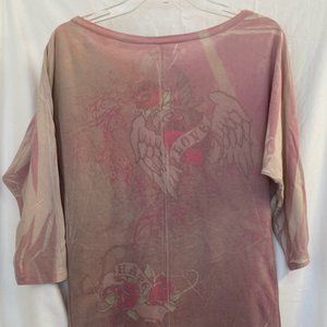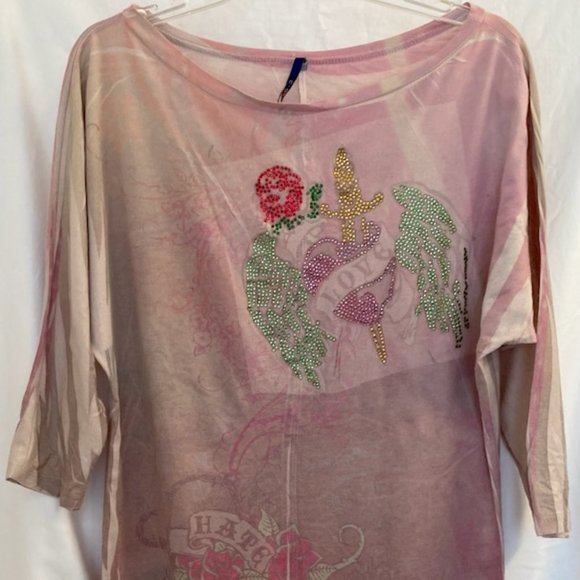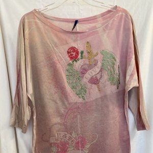Bedazzled pink and gray tunic. Size large. Mid-thigh length tunic great to wear over leggings.