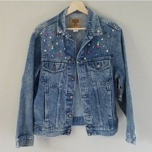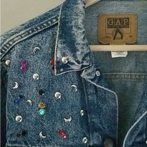 Bedazzled Vintage GAP blue denim jean jacket sparkles 80s 90s Size Small