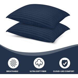 * POLYCOTTON STRIPED PILLOWS- Enjoy a comfortable night’s sleep with this pack of 2 plush fiber fill bed pillows .