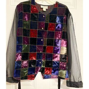 Bedford Fair Lifestyles Blouse SZ 26W Crushed Velvet Patchwork Lightweight