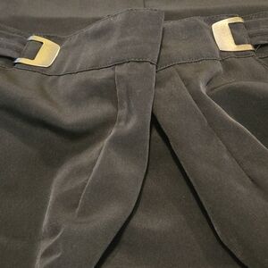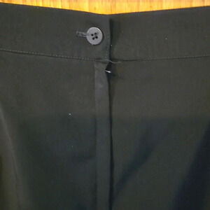 vintage plus size skirt, Bedford Fair Lifestyles 22W, Black polyester skirt, modest buckle skirt, made in USA women’s skirt, church skirt plus size, vintage career skirt, decorative silver buckle waist detail, 90s polyester maxi skirt, black flowy skirt 22W