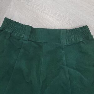 Bedford Fair Vintage Women’s Dark Green High Waist Suede Shorts , Size 6, elastic waist, front pockets, fully lined, button & zip front with belt loops.one small spot as shown, otherwise perfect, Measurements are