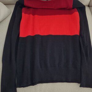 Bedo Femme lightweight long sleeved red/orange/black crew neck sweater, size L