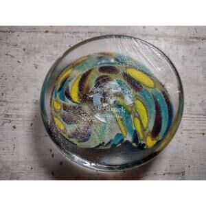 Bedrock Industries Recycled Glass Round Flat Paperweight Spots Yellow Brown Blue