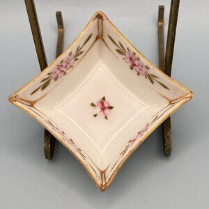 Lovely hand painted square ceramic dish with delicate pink and gold design. Painted in Nippon, before 1921.