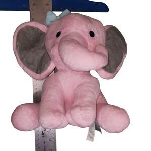 This sweet and cuddly pink elephant plush is perfect for snuggles, playtime, or display! Featuring oversized floppy ears with gray accents, embroidered black eyes, and a soft trunk that curls, this adorable elephant is topped with a cute blue bow for extra charm. Its super-soft material makes it a wonderful gift for kids, collectors, or anyone who loves elephants.