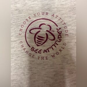 Bee Attitudes Imperfect Graphic Gray Baseball Style Tee Shirt NWOT. Size large.