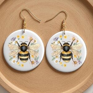 Charming earrings featuring a bee design with gold hooks. Perfect for adding a touch of nature-inspired elegance to any outfit.