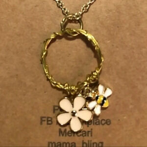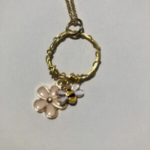 Bee & flower pendant is appx 1.5”. 10k gold plated chain is appx 20”. I ship fast!