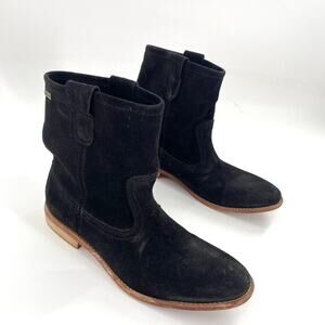 Bee Fly Womens Ankle Boots Black Suede Pull On Sz 40/ 9-9.5 Leather Sole
