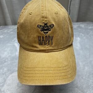 Bee Happy Cap Hat Yellow Womens Mustard Yellow Embroidered Strapback Home Free