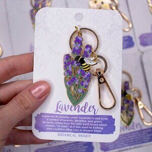 Bee & Lavender Flower Enamel Keychain with Key Clip - Gold Plated - Nature