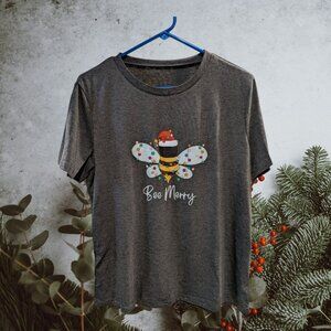 Bee Merry Holiday Women's Casual Crew Neck T-Shirt - Size Large
