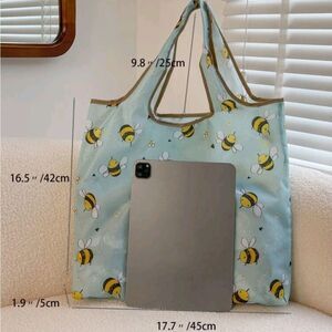 New! Reusable shopping tote bag in cute bee 🐝 pattern. Folds into convenient pouch. Approximately 17.7x16.5". Strong and durable nylon material. Bundle to get a discount.