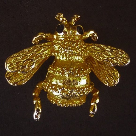 Gold-tone bee pin; 0.75" tall; excellent condition.