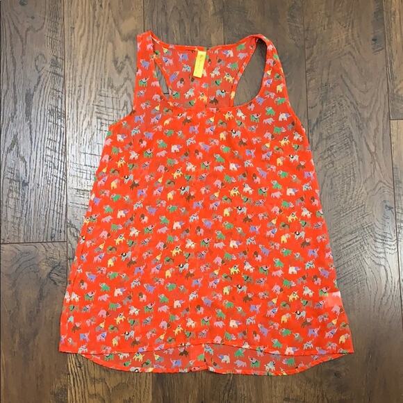 Bee Stitched Elephant Print Sheer Racer Back Tank