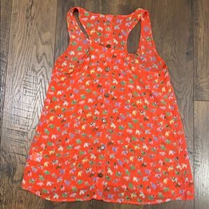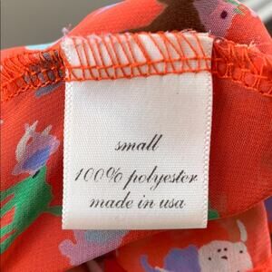Size S. 100% polyester. Length 25 inches. Armpit to armpit 17 inches. Buttons up the back. Light weight. Great condition!