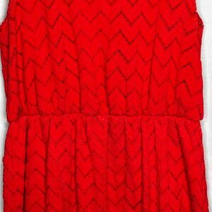 Bee Stiched sleeveless dress. Lace overlay with a full lining. Elastic waist. Solid red. 60% nylon, 36% polyester, 4% spandex. Lining is 100% polyester. Hand wash or dry clean. Size M.