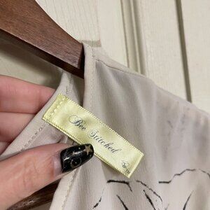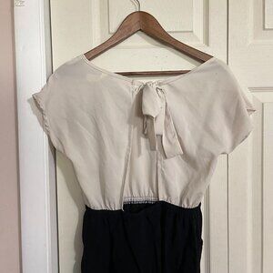 Bee Stitched Womens Cream Black Floral Y2K Tie Keyhole Back Mini Dress Small. NOTE: multiple spots (see photos) no size tag, measures like a small- Measurements Underarm to underarm: 18" Length: 32" Waist: 26" Offers always welcome! Measurements are approximations taken while hanging
