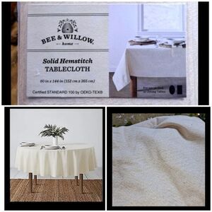 Bee & Willow Solid Hemstitch Tablecloth Vanilla Ice Gold NWT