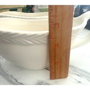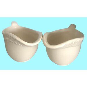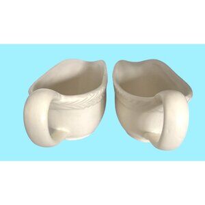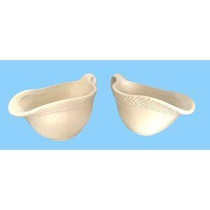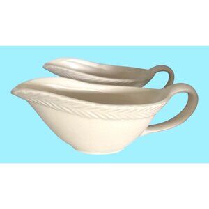 Bee & Willow Stoneware Gravy Boats Set Of 2 Cream Color Embossed Leaf Design