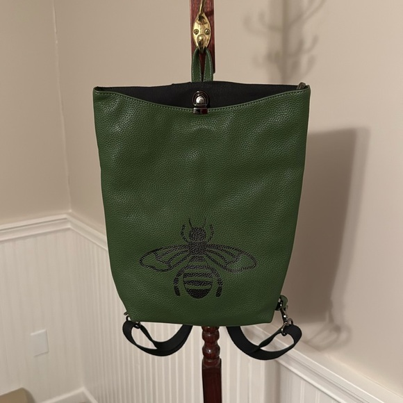 Cute Bee backpack- perfect size for hands free errands. Two interior pockets and 1 zippered pocket. Never used, excellent condition
