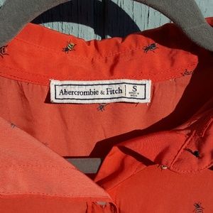 Button up shirt with bees, or flys on it..Im going to assume they're bees since nobody likes flys. Color is salmon. It's been well loved, but still has lots of life left.