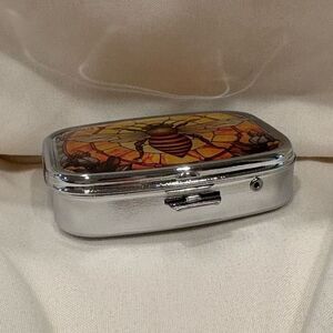 Bee in Stained Glass Window Travel Pill Box 2 Compartment Medicine Pill Case NEW