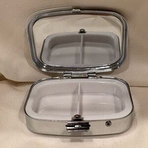 Gorgeous travel size stained glass style bee pill case with 2 compartments, use for medicine, vitamins. Pocket or purse use, keep it in the car. Also has a mirror on inner lid. Made with shockproof durable metal outer shell that keeps meds and supplements safe from damaging moisture and oxidation. Great little gifts for hostesses, teachers, stockings, etc. I ship fast usually within a business day!