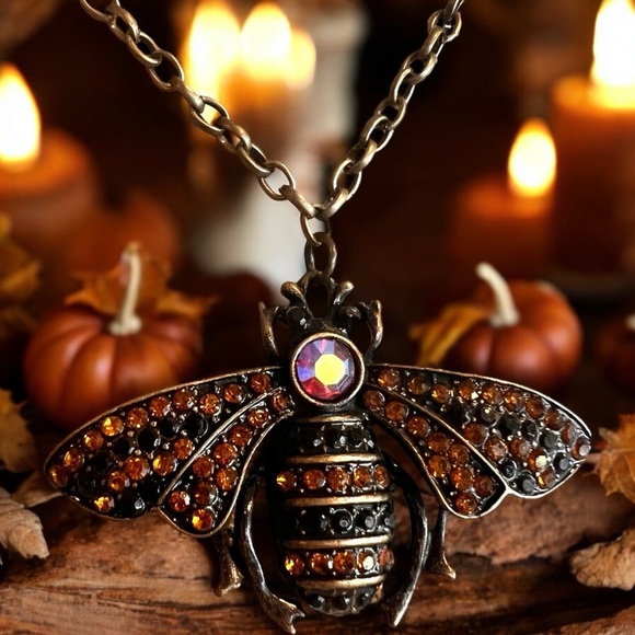Bee pendant necklace 20” chain 2” wingspan Gorgeous