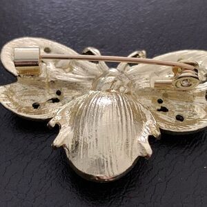 Bee Brooch – Green, White & Black Crystal Pin in Gold Tone Metal