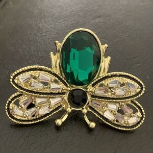 TAGS: bee brooch bee pin crystal insect jewelry gold tone bee accessory green crystal brooch animal motif jewelry lapel pin scarf pin jacket accessory unisex jewelry boutique brooch whimsical bee style #beepin #beebrooch #beejewelry