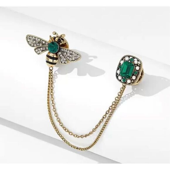 Absolutely gorgeous emerald colored bee pin in gold setting that can be pinned on collar, lapel or anywhere. Bee different, bee beautiful, bee successful or at least look the part. Anyway you look at it , you cannot lose.