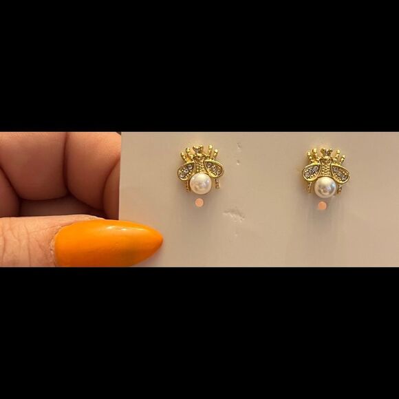 Bee Gold Earrings With Pearl S925 Silver Post nwt